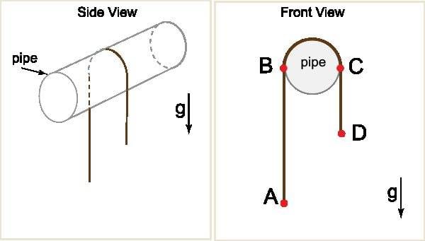 Points B and C - the points where the rope loses contact with the pipe.