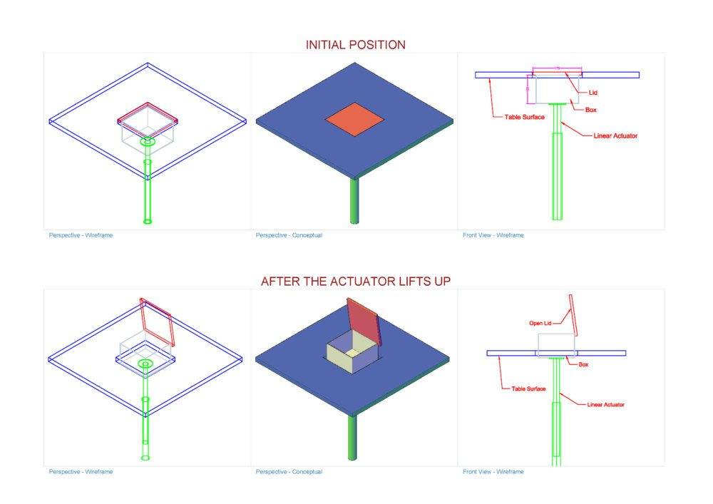 - I am new to making mechanical stuffs. I need to create a lifting box which opens its lid while lifting up. I am using a Linear actuator to lift the box. But i am not getting a proper solution on how to open the lid smoothly whole the box is lifted up. Can i get some sugessions.