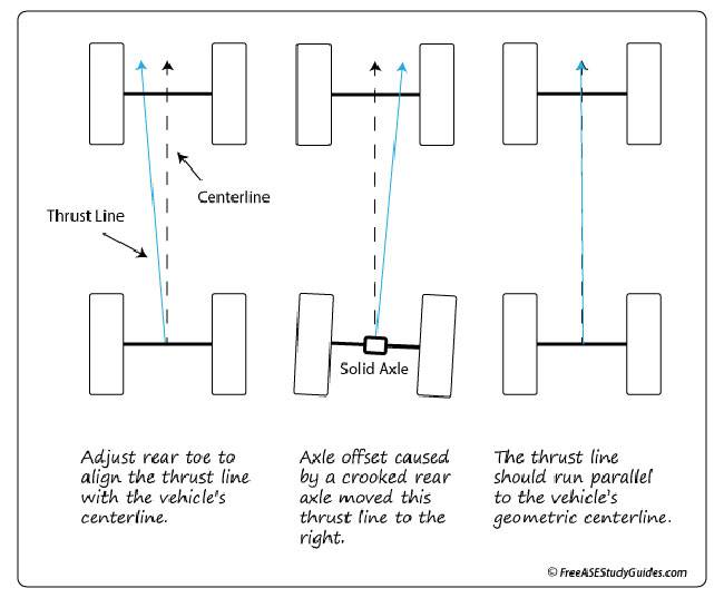 If you can adjust the rear toe, great, you set it up to correspond to the centerline. But if you cannot - assuming the thrust angle is within specs (i.e. no damage) - it is better to adjust your front toe along the thrust line rather than the centerline because this is the path your rear axle will follow in a straight line.