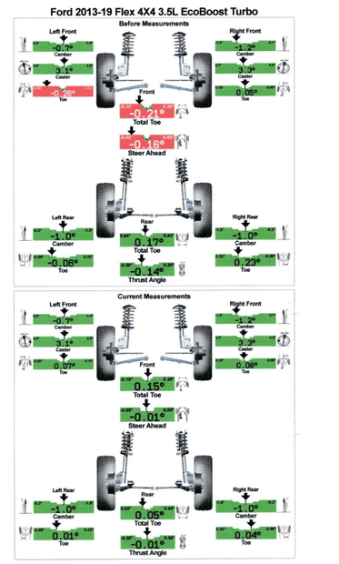 I could have sworn somewhere in this thread I saw that some slight positive toe in in the rear was actually desired, because it helps keep the car moving straight ahead. But I can't seem to find it. But then I see in the post above that zero thrust angle is actually desired. If the rear toe is other than zero, you have a thrust line. I assumed that from the specifications 2 mm for the rear axle plus some tolerance, also suggested that a slight toe in was actually desirable as well, and the ideal rear total toe is actually 2 mm.