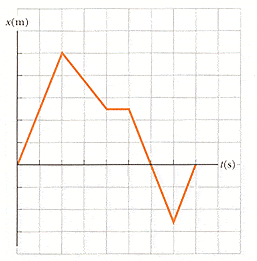 A graph of position versus time for a certain particle moving along the x-axis is shown in the figure below. Find the average velocity in the following time intervals. (The horizontal axis is marked in increments of 1 s and the vertical axis is marked in increments of 2 m.)