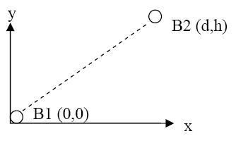 Ball 1 (B1) and Ball 2 (B2) are located at (x,y)=(0,0) and (x,y)=(d,h).