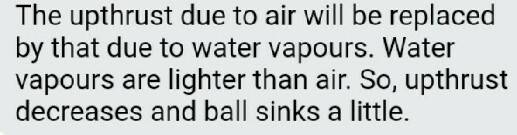 @Jahnavi want to see an example on how to apply Archimedes principle quantitatively to gases, in particular, using the ideal gas law ## PV=nRT ##, a suggestion would be to read through the thread of the "link" in post 15. Qualitative problems have answers like "a little" or "a lot", but there is more precision in quantitative calculations that actually compute things such as "given a density of cork=... how much does the cork sink?", or "given the man weighs 150 pounds, and the payload is another 50 pounds, what helium balloon volume do we need to lift the man off the ground?" Anyway, you might find the "link" of post 15 of interest.