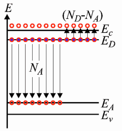 Showing the band diagram below for compensation doping: