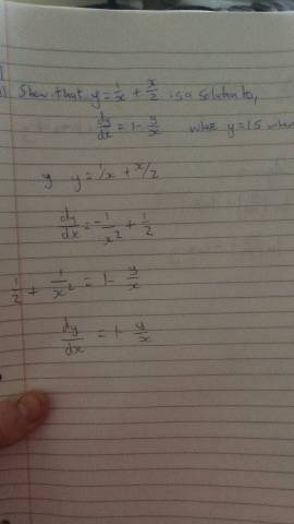 1. Show that y=1/x + x/2 is a solution of the differential equation,