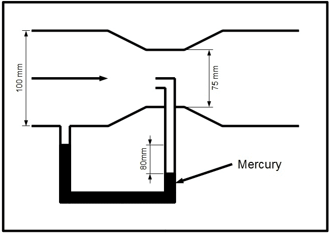 I approached this as a manometer question, but with that orifice in the flow I was unsure on how to proceed. I chose a datum as the lower of the two levels of mercury. The expressions I got were: