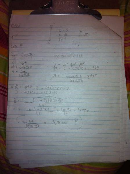 Equations: Yf= Vosin(35) -9,8t