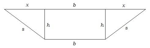 $$A(x)=(b+x)\sqrt{s^2-x^2}$$