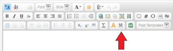 Next to that button, you will find buttons specifically for HTML and PHP code. Click the appropriate button, and then paste your code in between the generated tags, or paste your code into your post, then select it, and click the appropriate button to wrap the selected text in the tags.