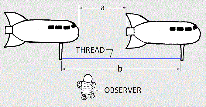 - There is a contention regarding the behavior of the thread connecting the ships, with some arguing it does not shorten while others suggest it is affected by the acceleration of the ships.