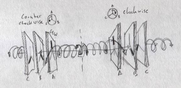 Now to raise a question ... let's imagine something wild and suppose that a polarised Photon is not just some straight wave in reality, but possibly more like a string in the shape of a constant curvature knot (8) that spirals forward, which can squeeze its way through the slated polarisation filter with more or less leeway. If so, than there should be more variables than just those 3 ABC-options and the *Spookiness* has more to do with how light passes through a filter than 'locality'. My point is that we always look at a hidden variable ONLY within the Photon, but not in the Photon-Filter interaction, why?!