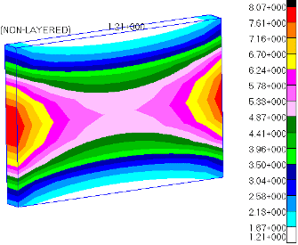 But shear stress distribution is not uniform across width. I was expecting rectangular bands parallel to horizontal edges but i get curved bands across widths. what could be the reason of that?
