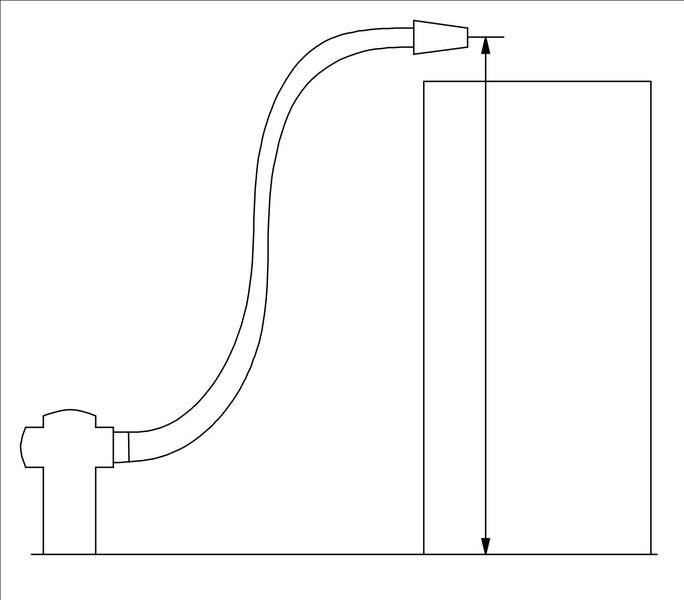 What gauge pressure is required in the city mains for a stream from a fire hose connected to the city mains to reach a vertical building of height 15m?