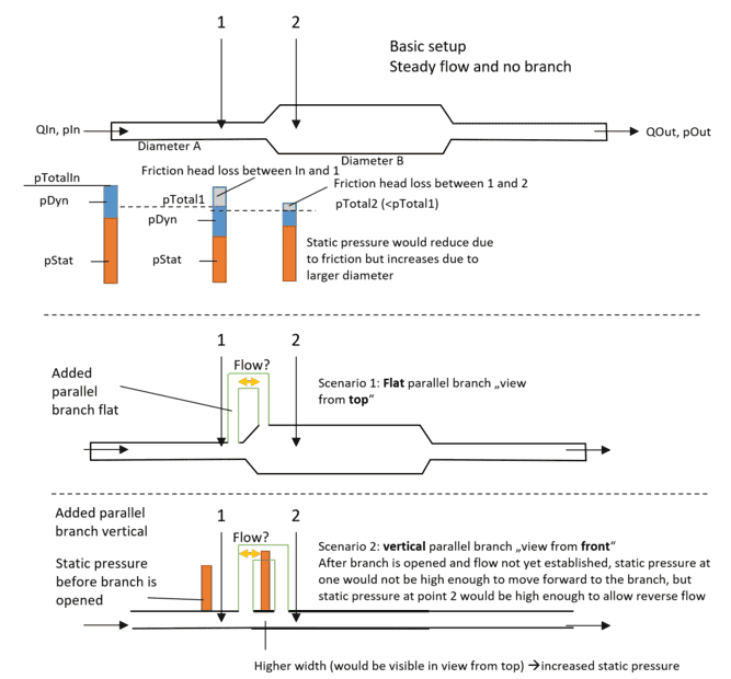 - Question about how the flow will establish in a parallel pipe branch when static pressure after the branch is higher than before