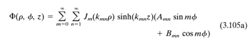 A hollow right angle cylinder of radius a and length l. The sides and bottom are grounded. The potential at the top of the cylinder