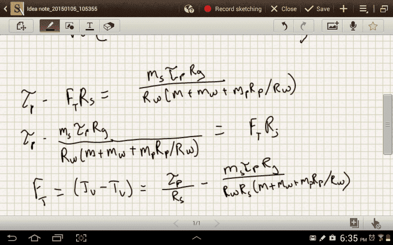 I originally thought the equation was (Tu-Tl)Rg/Rw because it would show that a bigger gear would give more traction.