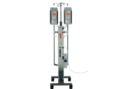 Fast-flow blood warmers (pictured below) can be used to heat blood products (carefully and uniformly) when rapid, high-volume transfusions are necessary, in order to prevent hypothermia in the patient. The blood product density and specific heat can be assumed to be 1.12 g/cm3 and 3.8 kJ/kgK, respectively. If the blood product initially is at 8 degrees celsius, the target temperature is 37 degrees celsius, and the maximum transfusion rate is 900 ml/h, what is the theoretical heating power (W) needed for this machine?