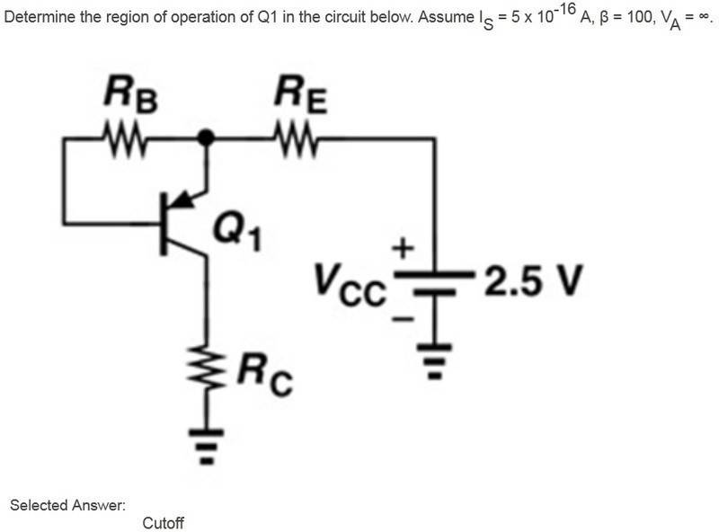 See the jpeg image for the circuit. Question is simply determine the region of operation.