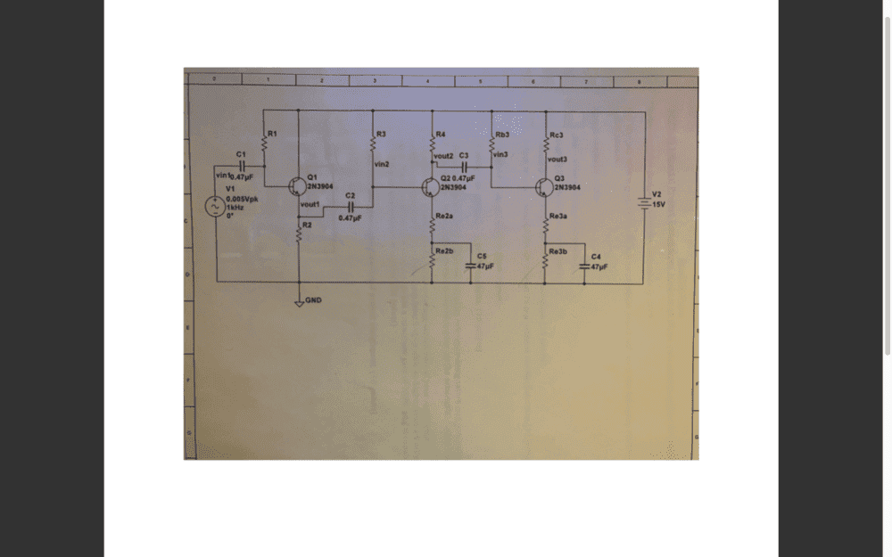 - Use 2N3904 NPN transistors to design an amplifier which will meet the electrical specifications. Several (three) cascaded stages will be necessary.
