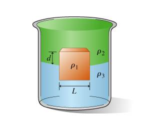 "A layer of oil with density 800 kg/m^3 floats on top of a volume of water with density 1000 kg/m^3. A block floats at the oil-water interface with 1/4 of its volume in oil and 3/4 of its volume in water, as shown in the figure above (below; i found a similar image). What is the density of the block?"