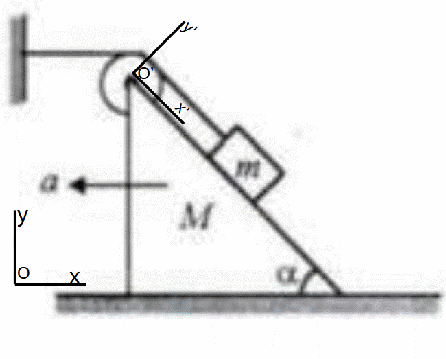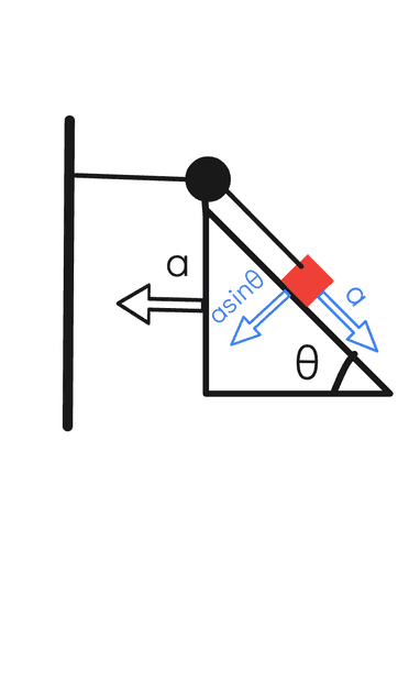 2) The block must always stay in contact with the wedge. Hence, the acceleration of the block normal to incline must be equal to the component of the wedge's acceleration along that directi
