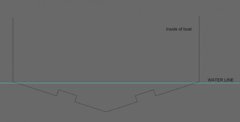 I drew two different pictures. One showing a standard boat hull and one with the tunnels. The argument is not about when the boat is running in a straight line but when the boat is standing still and just heeling from side to side.