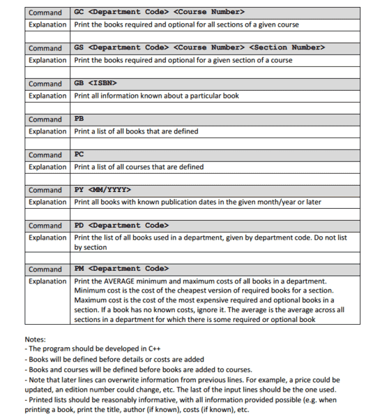 I began by creating 2 classes. A book class and a course class that contains any necessary info about the book and course respectively
