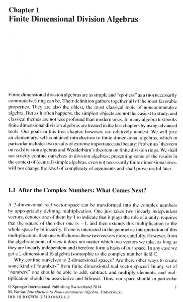 I am reading Matej Bresar's book, "Introduction to Noncommutative Algebra" and am currently focussed on Chapter 1: Finite Dimensional Division Algebras ... ...