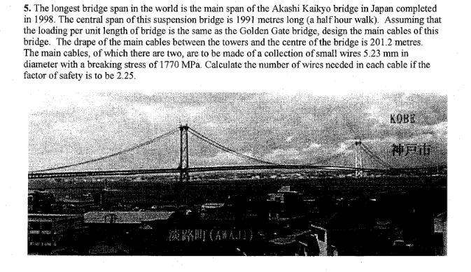 So right now, what I did is finding the vertical force of the bridge, by $\frac{wl}{2}=\frac{370 \cdot 1991}{2}$