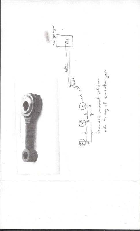 - Another participant suggests that eccentric drive gears are not standard catalog items and proposes making one by modifying a standard gear with a dowel pin, recommending McMaster-Carr as a source for various components.
