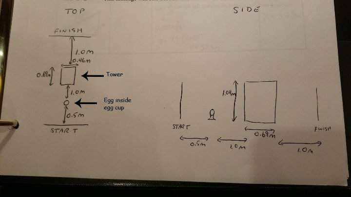 For my Grade 12 Physics ISU, basically I have to build a self-contained device (Can complete the task on its own after setting it up) using physics that can pick up an raw egg inside an egg cup and place safely it on a table/tower 1m away then continue 1m past the table. The egg can't have any cracks or breaks, ideally, when it is on the table. I can use any materials (Electronics are allowed) except dangerous stuff like fireworks, etc. The egg cannot be adjusted in any way before the device is in motion during the test. The size guideline given to us is only that the design has to fit in a standard door frame.