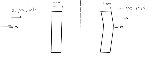 From the diagram, While the bullet is travelling, it has momentum (15x10-3)(300) = 4.5 kg(m/s) and after the crash, it has momentum (15x10-3)(90) = 1.35 kg(m/s)