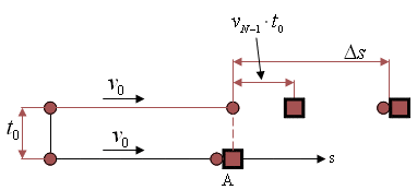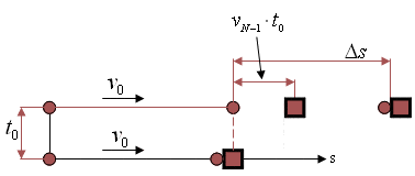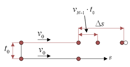 $$\Delta s=v_{N-1}\cdot t_0=\frac{(N-1)v_0t_0}{99+N}$$