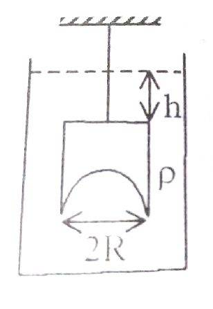 A hemispherical portion of radius R is removed from the bottom of a cylinder of radius R. The volume of the remaining cylinder is V and its mass is M. It is suspended by a string in a liquid of density ρ where it stays vertical. The upper surface of the cylinder is at a depth h below the liquid surface. The force on the bottom of the cylinder by the liquid is?