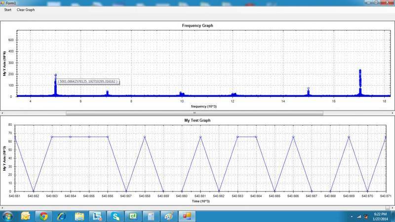 - There are mentions of specific frequencies tested and the resulting peaks observed in the FFT output, indicating possible issues with capturing the correct signal.