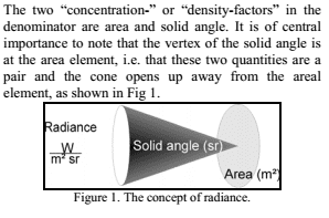 Radiance. Radiance, shown in Fig. 2, is the ratio of the radiant power, at an angle θs to