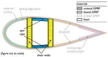 EDIT: actually I am a bit further in my research and i come to the conclusion that I need to know the interlaminear shear strength value of the material used in windturbine blades. Using this value I can calculate the force needed to cut the material I think. So how do I find this value??