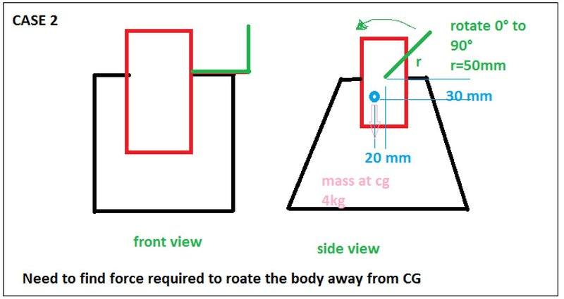 Please help me to find the force required to rotate a body of 4 Kg mass from 0° to 90° in 5 second. this force is acting at center of gravity. (Image: case 1)