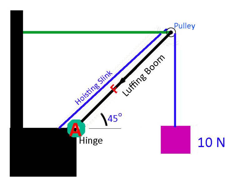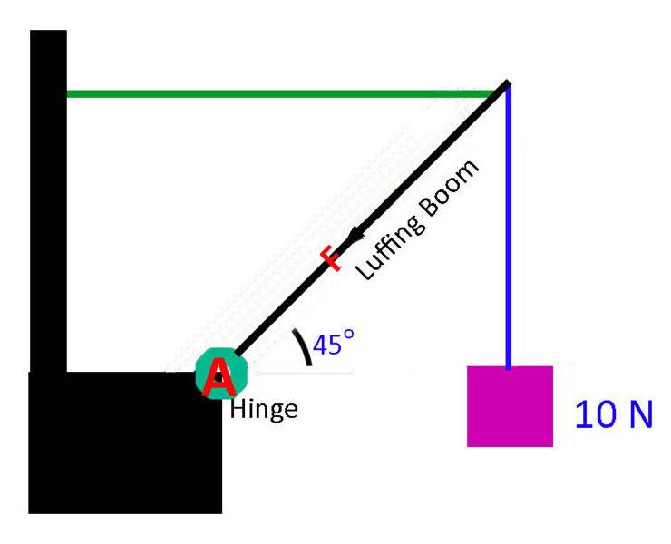 I think the crane with hoisting slink (and pulley in first pic) creating more compression force into hinge A than the one without.