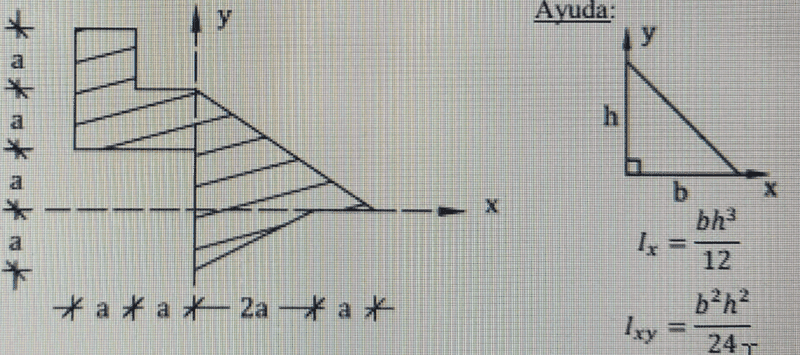 The discussion revolves around calculating the moment of inertia for a painted area with respect to the x and y axes, as well as determining the principal inertias. The subject area pertains to mechanics and specifically the properties of shapes in relation to their mass distribution.