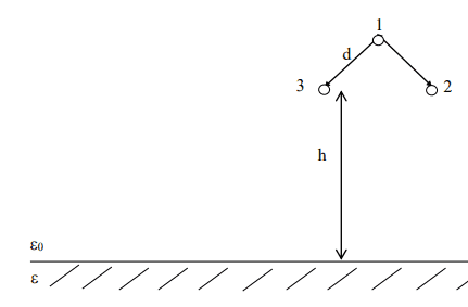 Conductors 2 and 3 are located at a height of h = 5 m from the ground; the distance between the conductors is equal to