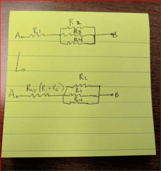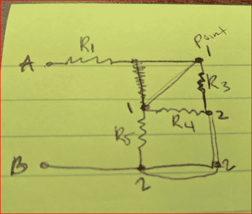 - Participants are trying to identify resistors in parallel and series, questioning the arrangement of resistors based on a provided diagram. There are discussions about simplifying the circuit and the implications of a diagonal line in the diagram.