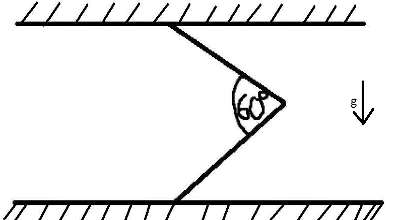 There is a metal stick that is connected to the ceiling with another one. The angle between them is 60°. Calculate the friction.