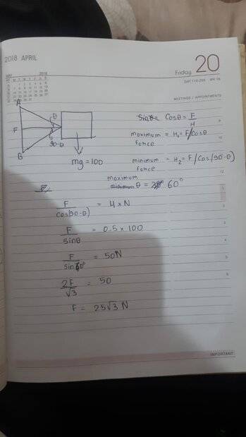 - Study the derivation of the formula F(min) = mgμ/√(1 + μ²) for minimum force calculations.