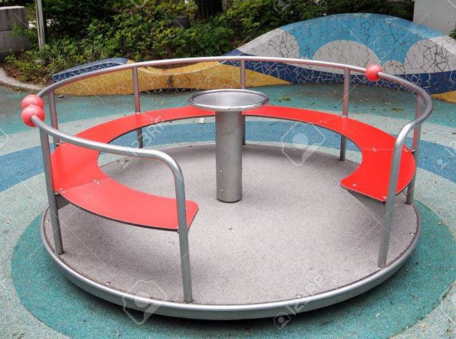 I am in the process of developing a playground carousel (see example attached) and need to calculate some forces acting on the construction in order to design the bearing mechanism and select the correct bearings for the job. I've made an outline which you'll find attached, with all information i have currently available. A load of 5000N will be applied on one side of the spinning disc Ø160cm (= 63 inches) and rotated at a max. speed of 60 rpm (handdriven).
