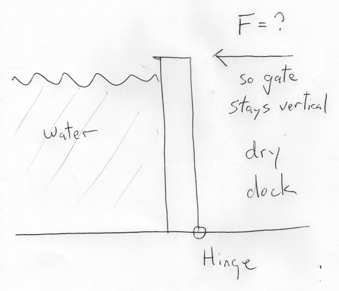 - Another participant emphasizes the importance of calculating the torque due to water pressure while noting that the thickness of the gate is irrelevant to the calculations.