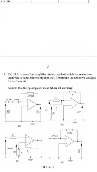 The discussion revolves around calculating unknown voltages in amplifier circuits, particularly focusing on operational amplifiers (op-amps). Participants seek resources and guidance on understanding the principles and calculations involved in these circuits.