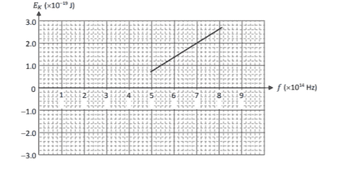 The discussion revolves around calculating the threshold frequency, work function, and Planck's constant based on a graph related to the photoelectric effect. Participants are attempting to extract values from the graph and explore the relationships between energy and frequency.