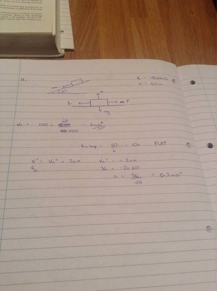 I am a little stumped with this question:( I have attached my solution so far which has just been to deduce the acceleration on the flat surface