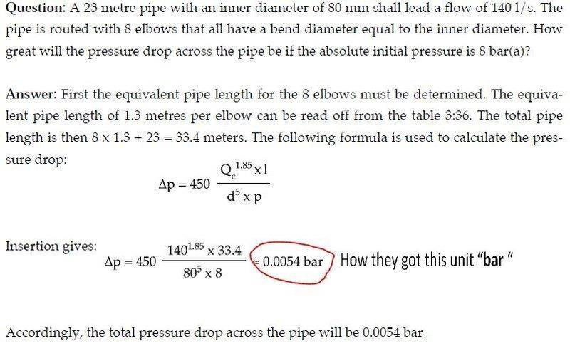 - One participant expresses confusion about how the unit "bar" was derived in the final answer of the compressor sizing calculation.